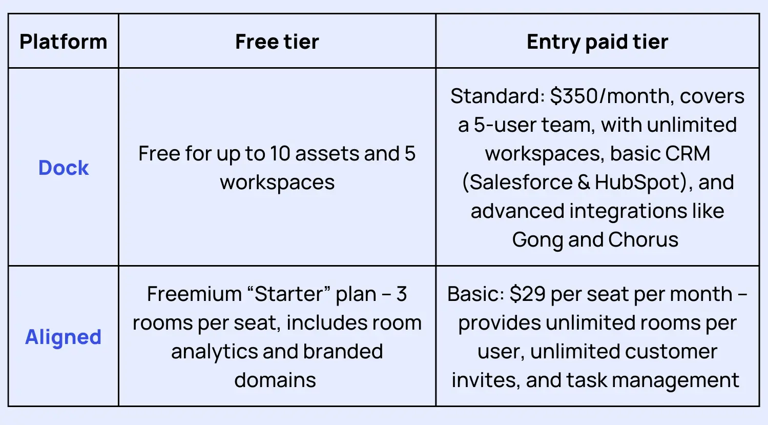 Both Dock and Aligned deliver strong buyer collaboration experiences, but the right fit comes down to your sales motion, team size, and appetite for customization.