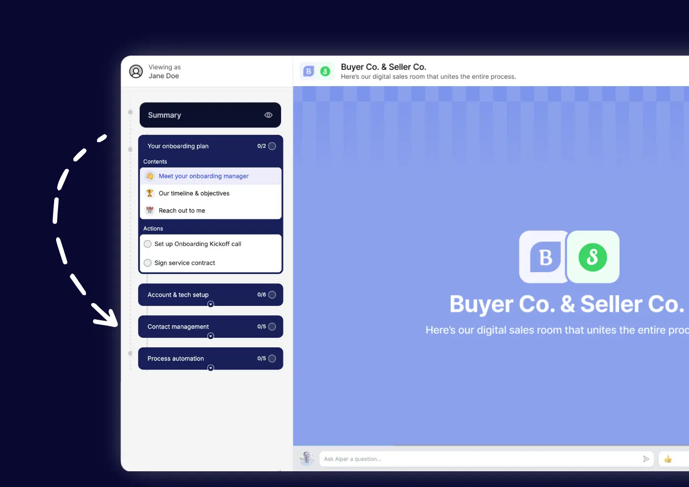 Imagine a smart assistant that's on 24/7, thinking about how to move sales & CS processes forward using deal room data.