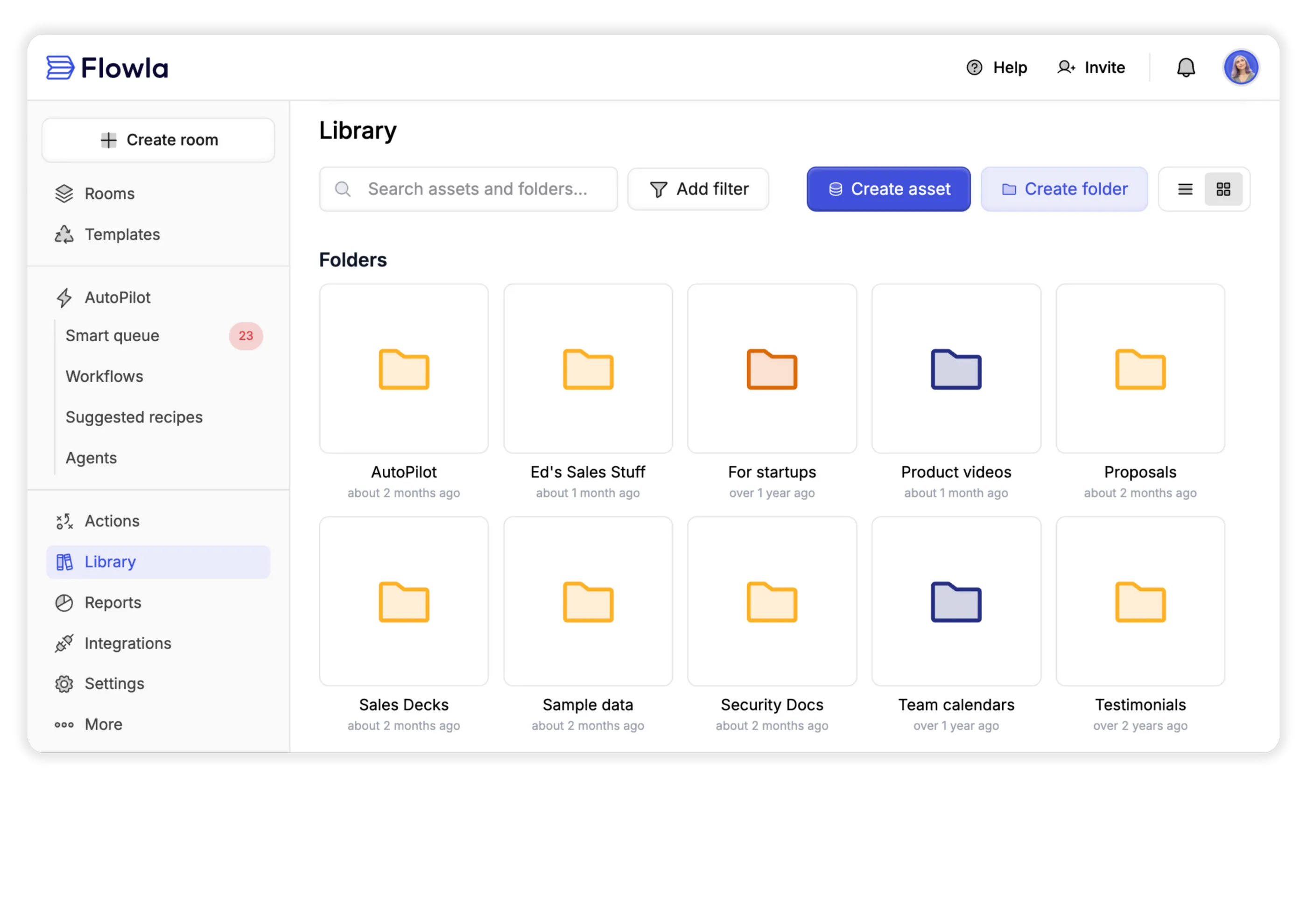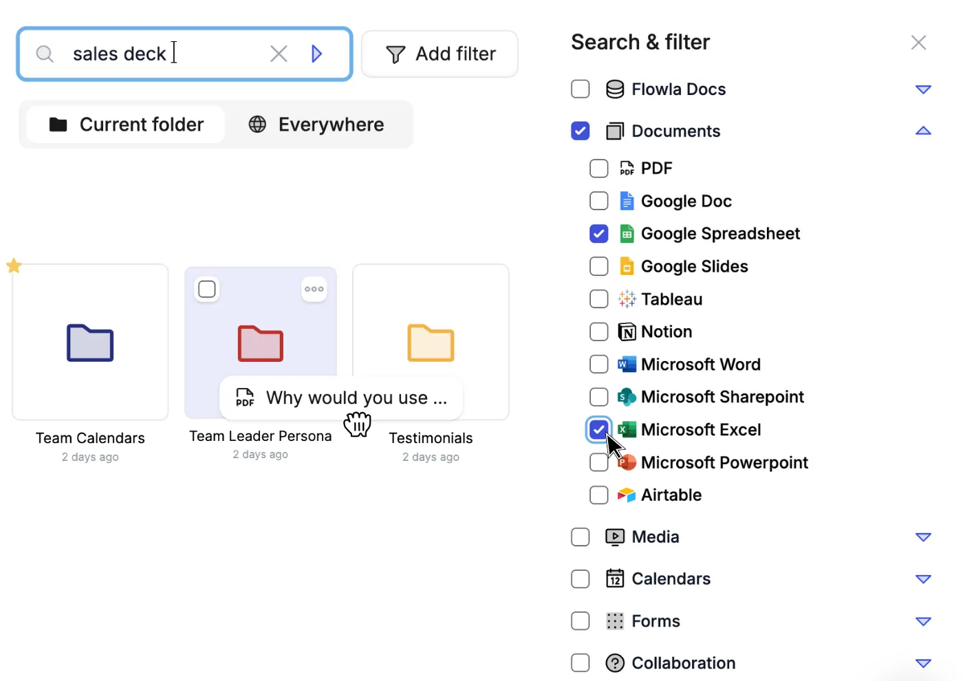 Organize your assets by persona, industry, sales stage, or product with folders within folders.