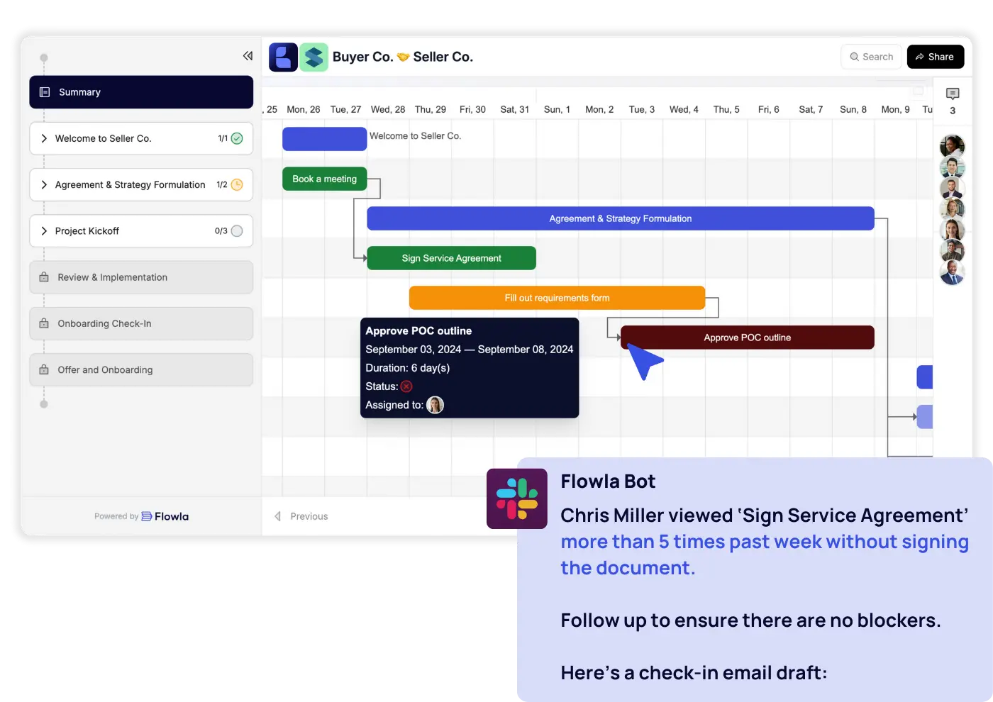 Deals not closing on time? Flowla unites the entire sales & CS process in one fully personalized, interactive link to make client collaboration simple, trackable, and repeatable. Shorten your cycles and hit targets with ease.