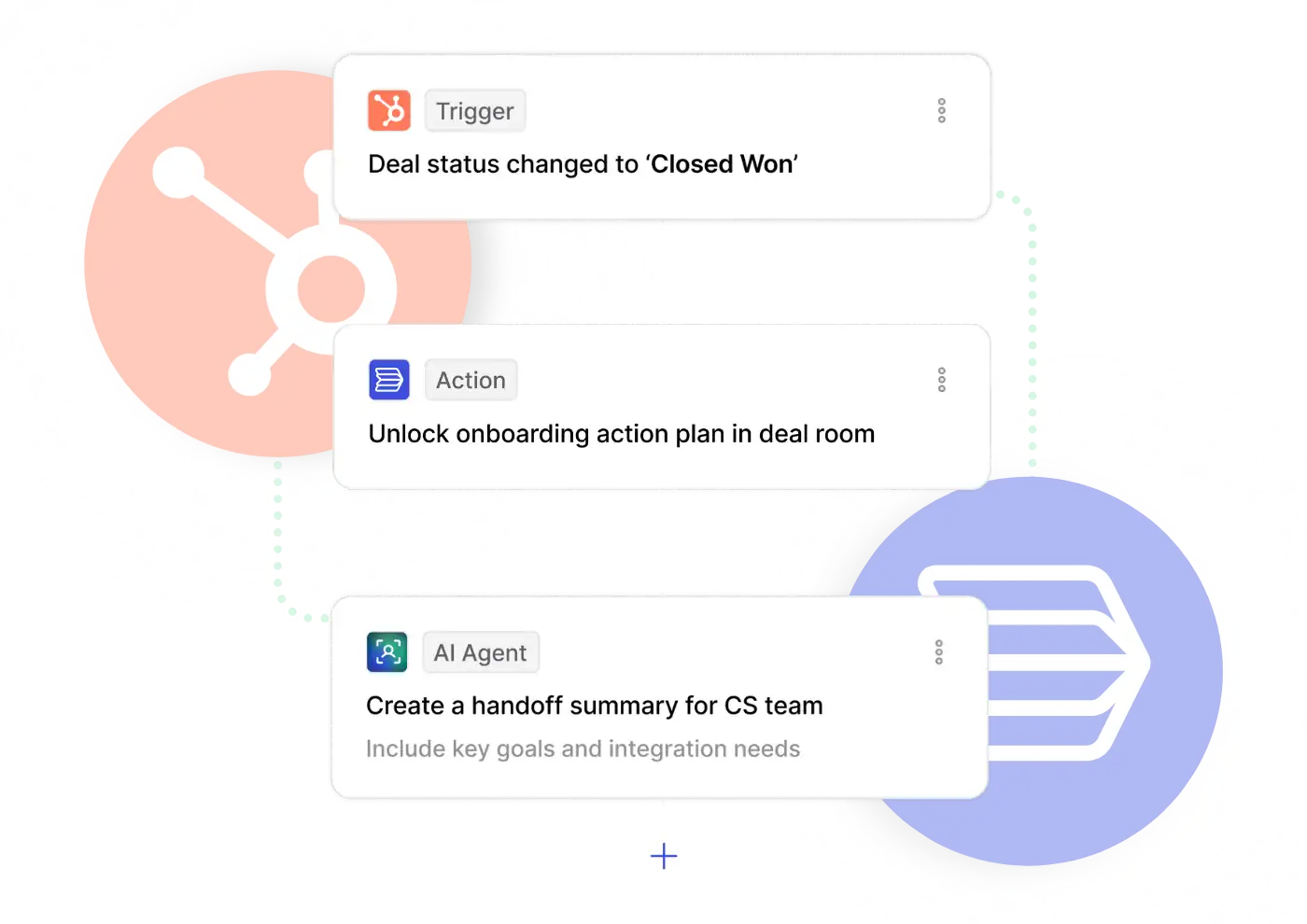 Deal rooms are automatically created, edited, and managed with workflows, while your CRM is always kept up to date via 2-way sync.
