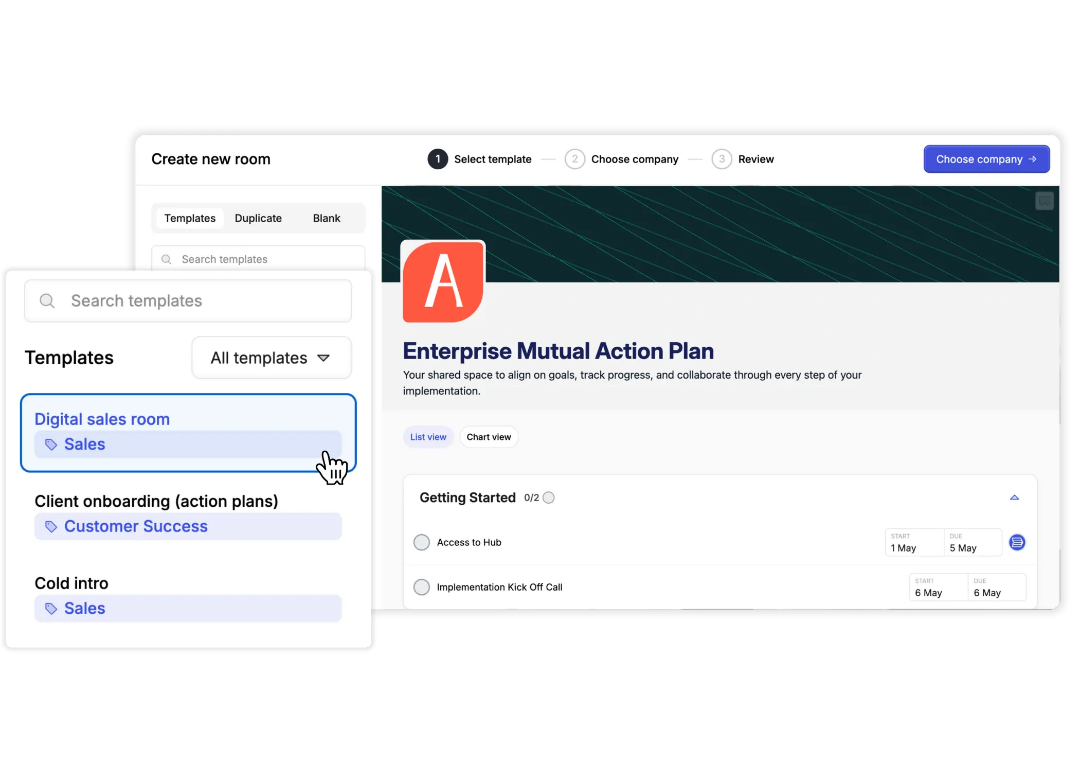 Replace messy email threads & spreadsheets with a single, step-by-step mutual action plan that keeps everyone engaged and on track for sales & onboarding.